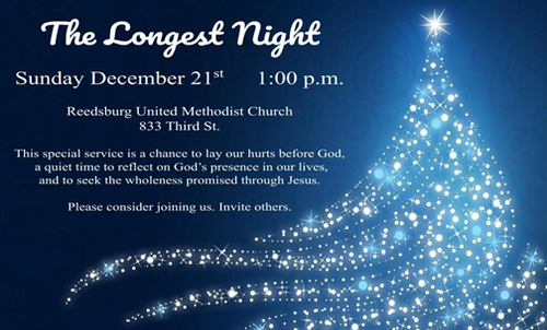Holidays can be hard. We often think about all the joy, but many are struggling. If you happen to be one who is struggling, join us for The Longest Night (December 21st at 1:00 p.m.) for a service of honoring that hurt and looking towards hope.