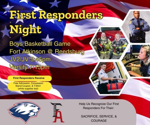 Reedsburg High School and the Boys Basketball team are honored to host First Responders Night! ❤️