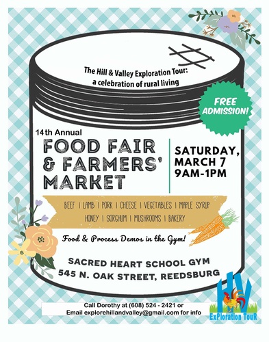 The 14th Annual Food Fair will be on Saturday, March 7th from 9am to 1pm in the Sacred Heart Church School Gym, 545 N Oak St, Reedsburg!! This is a wonderful event filled with local food and local products.