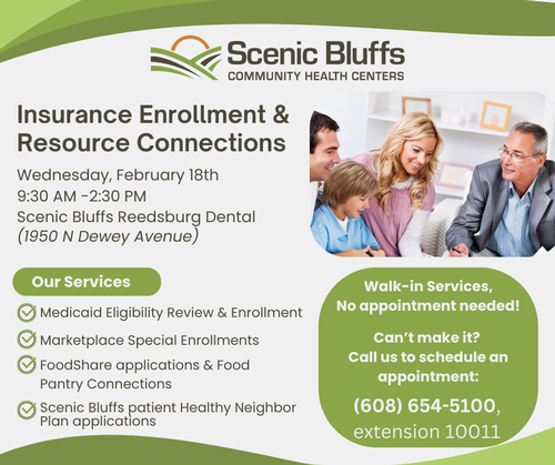 • Insurance Enrollment/Resource Connections with Scenic Bluffs Dental Clinic Reedsburg