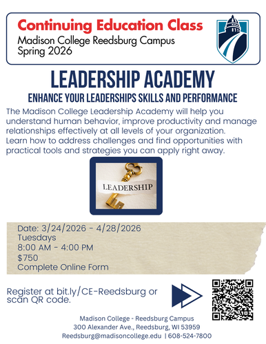 Enhance your leaderships skills and performance! The Madison College Leadership Academy will help you understand human behavior, improve productivity and manage relationships effectively at all levels of your organization.