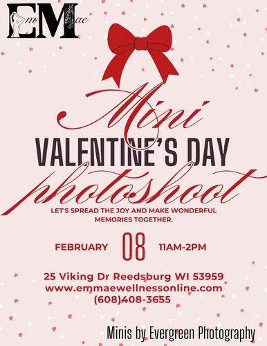 EmMae Wellness Shop is hosting a Mini Valentine's Day Photoshoot. Bring the kids to EmMae wellness shop dressed to impress for a quick photo shoot!