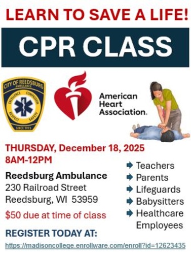 Reedsburg Ambulance CPR Class – December 18th! ❤️