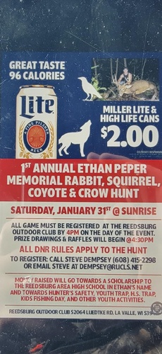 • Reedsburg Outdoor Club Rabbit, Squirrel, Coyote & Crow Hunt
