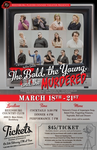 The Reedsburg Players Dinner Theater will be presenting The Bold, The Young, and The Murdered at the Reedsburg Country Club Wednesday - Saturday, March 18 - 21, 2026.