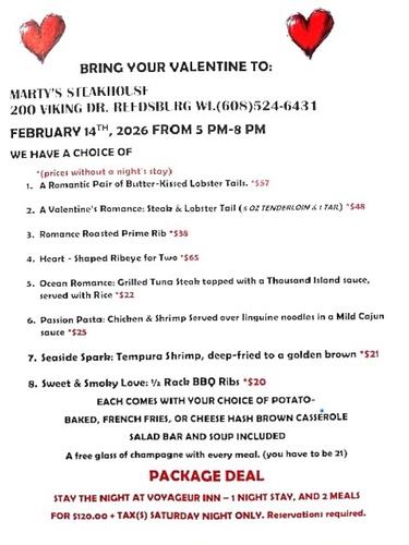 Bring your Valentine to Marty's Steakhouse for a fabulous dinner!